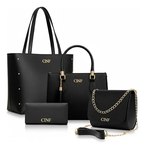 🔥 Kit Bolsas Feminina Sacola Transversal Tira Colo Carteira Cor Preta Liso Ouro Preto