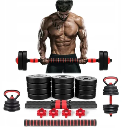 O preço original era: $239.60.$67.80O preço atual é: $67.80.🔥 Kit Halteres Barra E Anilhas Musculação Kettlebell Ajustáveis Peso Academia 15kg Vermelho